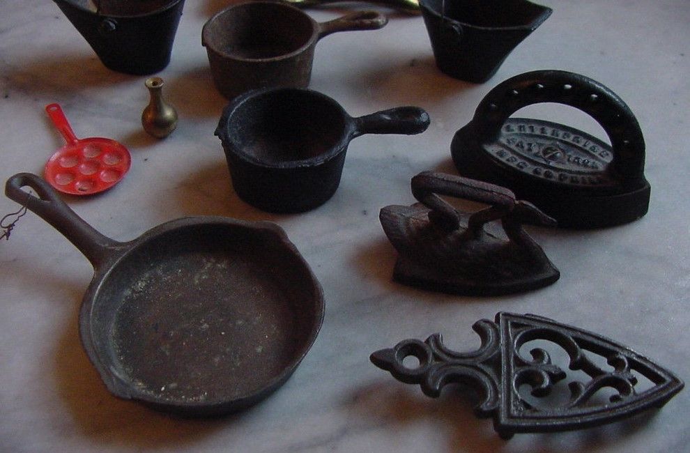 Title (ebay affiliate link): Miniature Cast Iron Brass Saleman Sample Stove Accessories Sad Irons Frying Pan