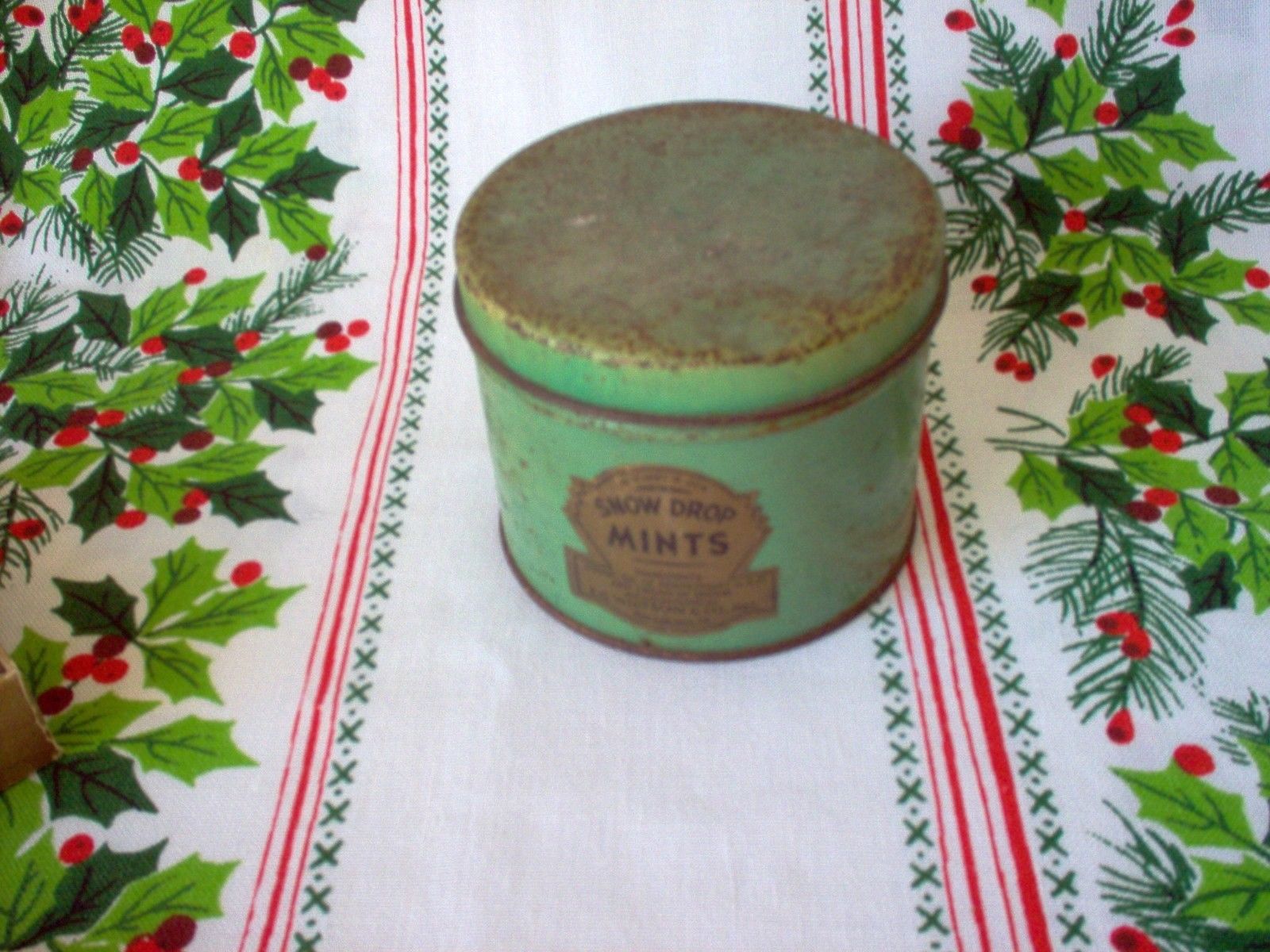 Title (ebay affiliate link): EARLY VINTAGE E.G. WHITMAN SNOW DROP MINTS - ROUND TIN HOLDS 6 OZ