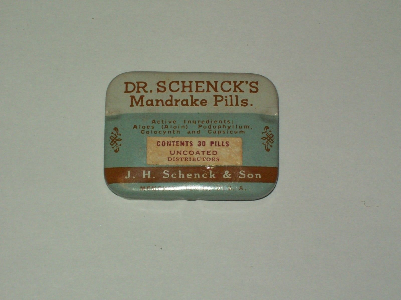 Title (ebay affiliate link): Vintage-Advertising-Medicine-LAXATIVE-Tin-DR SCHENCK''S-Mandrake-Pills-Contents