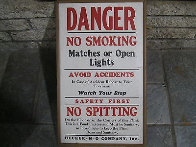Vintage Hecker H-O company Inc Danger no smoking spitting sign