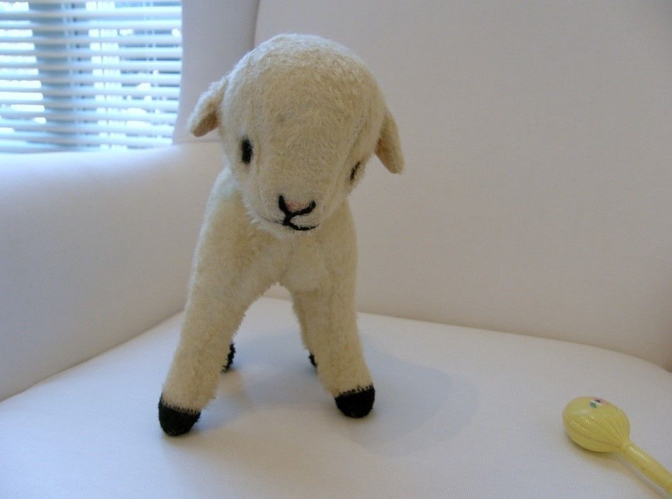 Title (ebay affiliate link): vintage stuffed lamb & baby rattle with bonus wool baby bunting