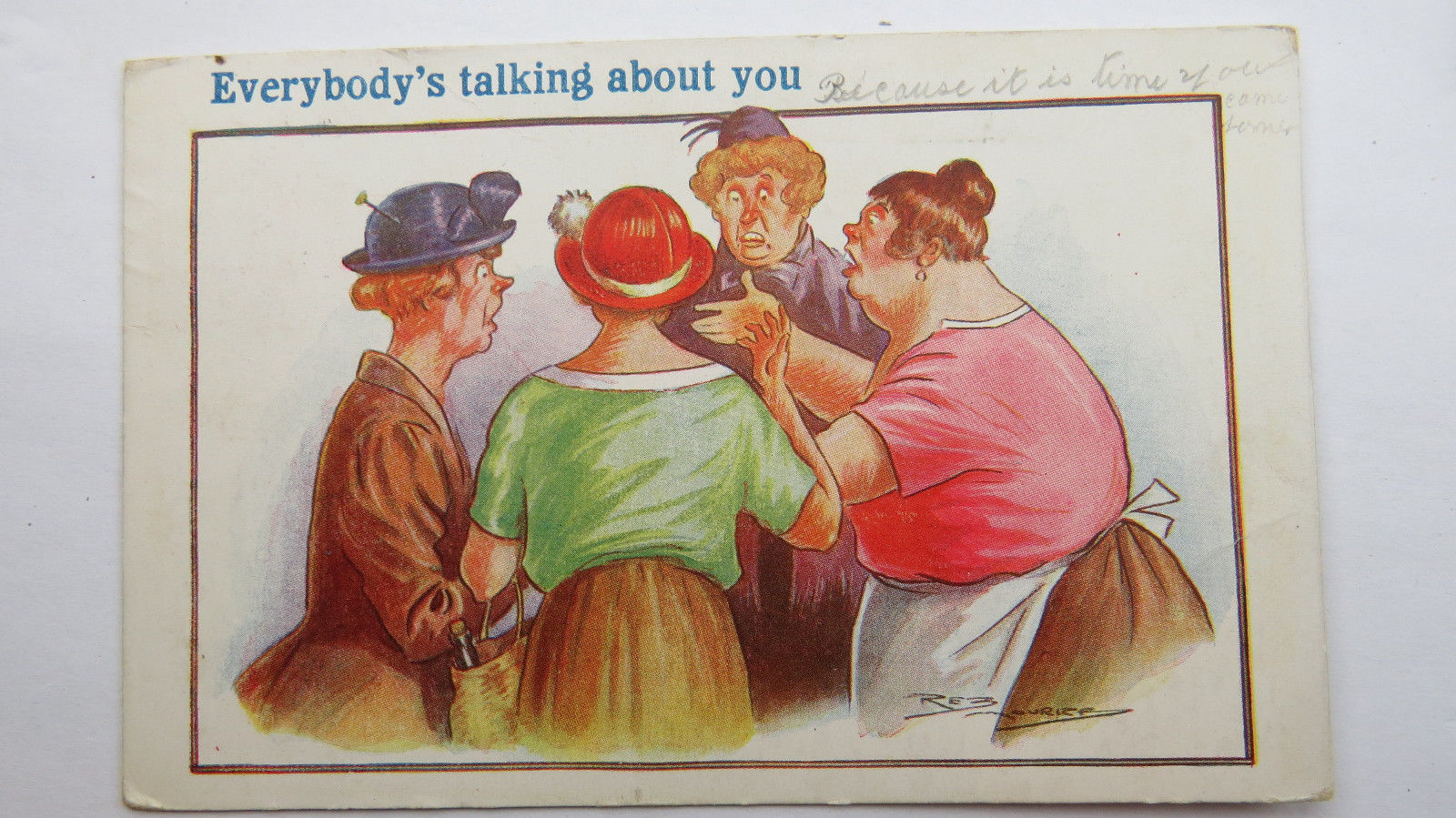 1926 Reg Maurice Comic Postcard Vintage Fashion Hats Hat Pins Fat Ladies Gossip