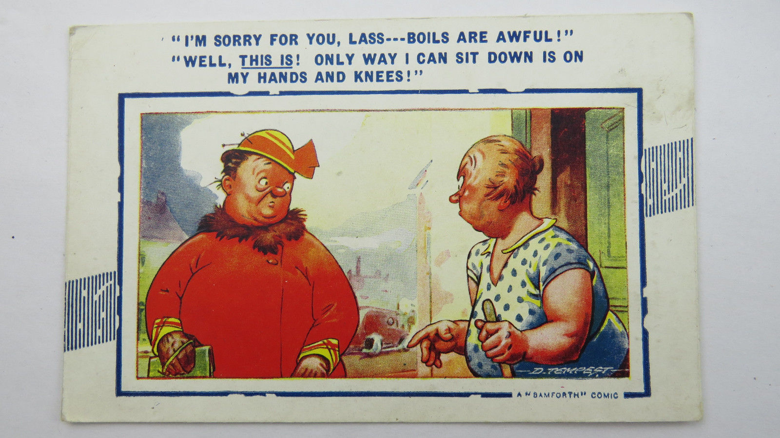 Title (ebay affiliate link): 1940s WW2 Bamforth Tempest Vintage Comic Postcard No 133 Hat Pins Fat Lady Boils
