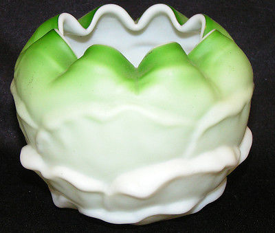 Title (ebay affiliate link): CONSOLIDATED VICTORIAN RARE GREEN CABBAGE ROSE PATTERN ROSE BOWL HAND BLOWN #2