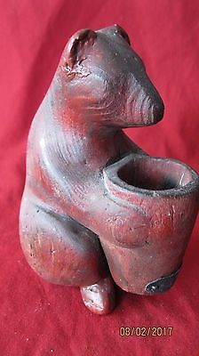 VINTAGE FOLK ART BEAR MATCH HOLDER
