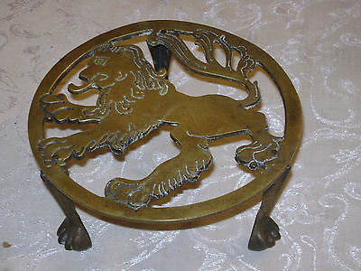 Vintage Brass Lion Rampant 3 Ball & Claw Footed Plant Stand