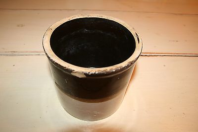 Vintage Crock, Unmarked Small Brown TWO TONED Glazed Stoneware Crock BUTTER