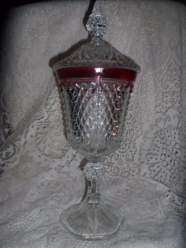 Title (ebay affiliate link): Vntg Tall Crystal Diamond Point Indiana Glass w/Ruby Red Flash Pedestal Compote