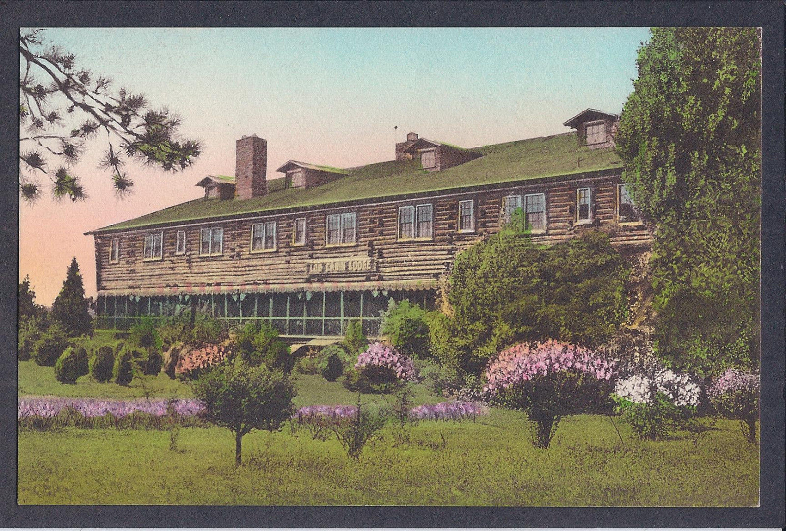 Postcard Hand-Colored Log Cabin Lodge, Medford Lakes-in-the-Pines, Medford, NJ
