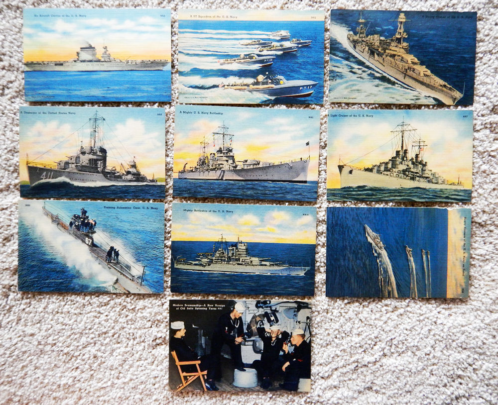 Title (ebay affiliate link): Lot of 10 WWII US Navy Linen Postcards Carrier PT Cruiser Battleship Sub Plus