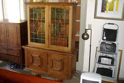 Antique 2 pc OAK BOOKCASE W/LEADED GLASS