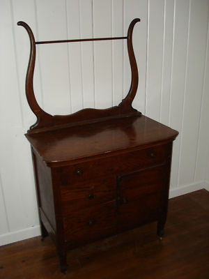 Title (ebay affiliate link): Antique Washstand / Dresser / Vanity with Towel Bar
