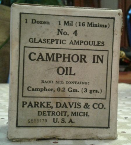 Vintage PARKE DAVIS Glaseptic Ampoules Ampule Camphor in Oil 1 Doz Injectable