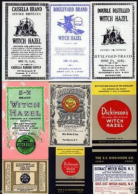 28 ~ WITCH HAZEL ~ Antique PHARMACY Drug Store Vintage Rx Medicine BOTTLE Labels