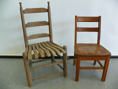 Title (ebay affiliate link): ANTIQUE CHAIR + VINTAGE SCHOOL DESK CHAIR LADDER BACK