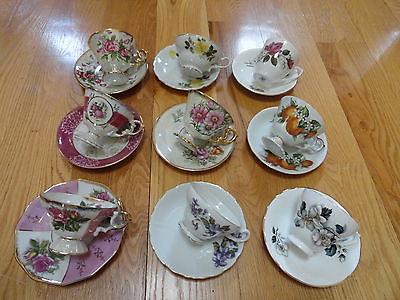 8 VINTAGE MISMATCEH TEACUPS AND SAUCERS WEDDING CAKE DECOR PEARLIZED FLORAL