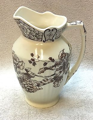 Vintage Brown Transfer Ware Fine Porcelain 8" Cream / Milk Pitcher