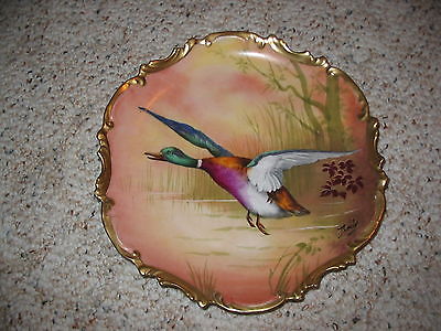 Limoges France Coronet Hand Painted Artist Signed Game Plate Duck Rocco Edges