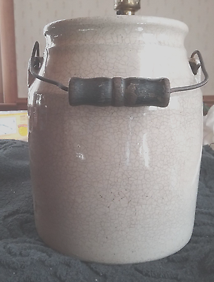Title (ebay affiliate link): Small antique primitive plain salt glazed Crock with wire and wood handle