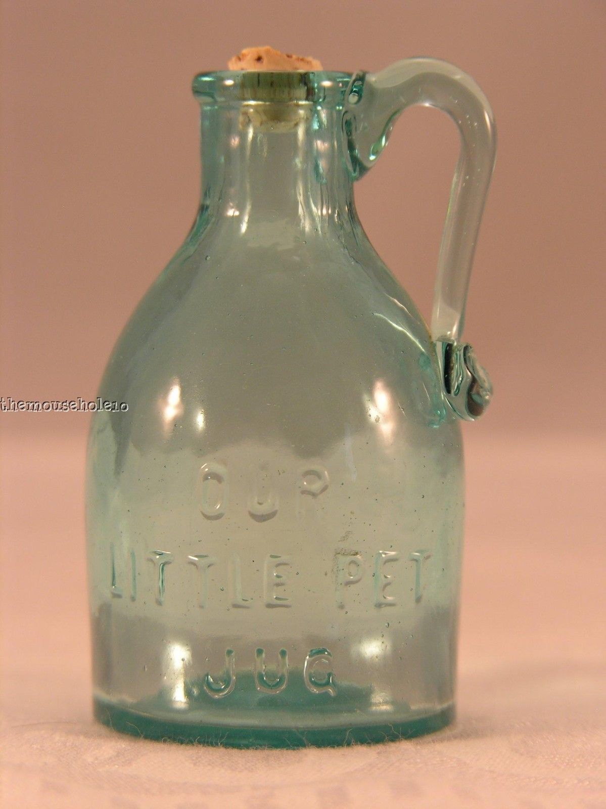 Title (ebay affiliate link): Aqua blue small glass jug - Our Little Pet Jug - hand applied handle