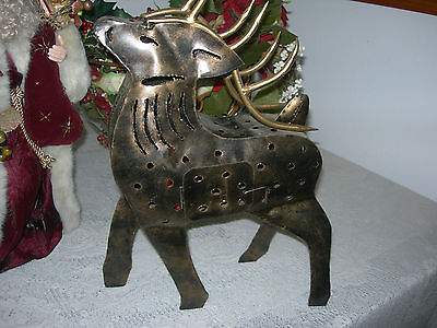 VINTAGE RUSTIC 17" STANDING ANTLER DEER~CAST METAL~TEA LIGHT CANDLE LIGHTED