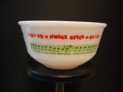 Vtg. CHRISTMAS WHITE MILK GLASS MIXING BOWL-EGG NOG NR