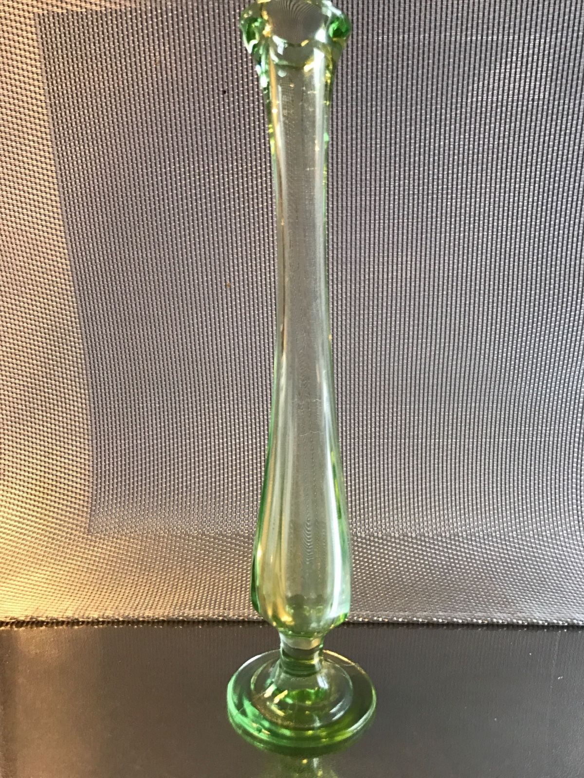 Title (ebay affiliate link): BEAUTIFUL GREEN VASELINE URANIUM DEPRESSION GLASS BUD VASE