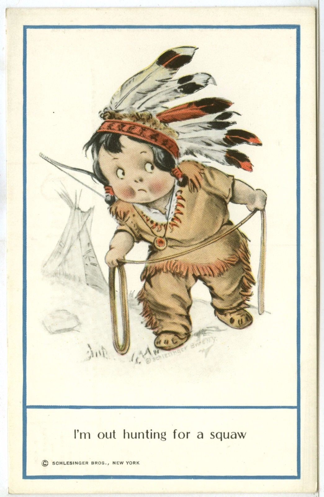 Title (ebay affiliate link): Vintage, "I''m out hunting for a Squaw", Young Native Boy with Lasso, What a Face