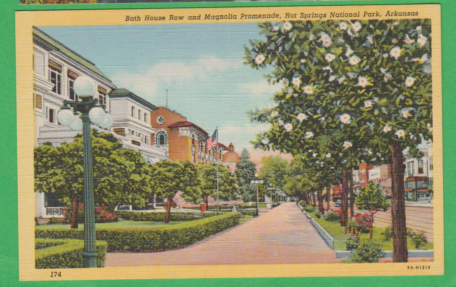Hot Springs, Ark/ Bath House Row and Magnolia Promenade/linen postcard