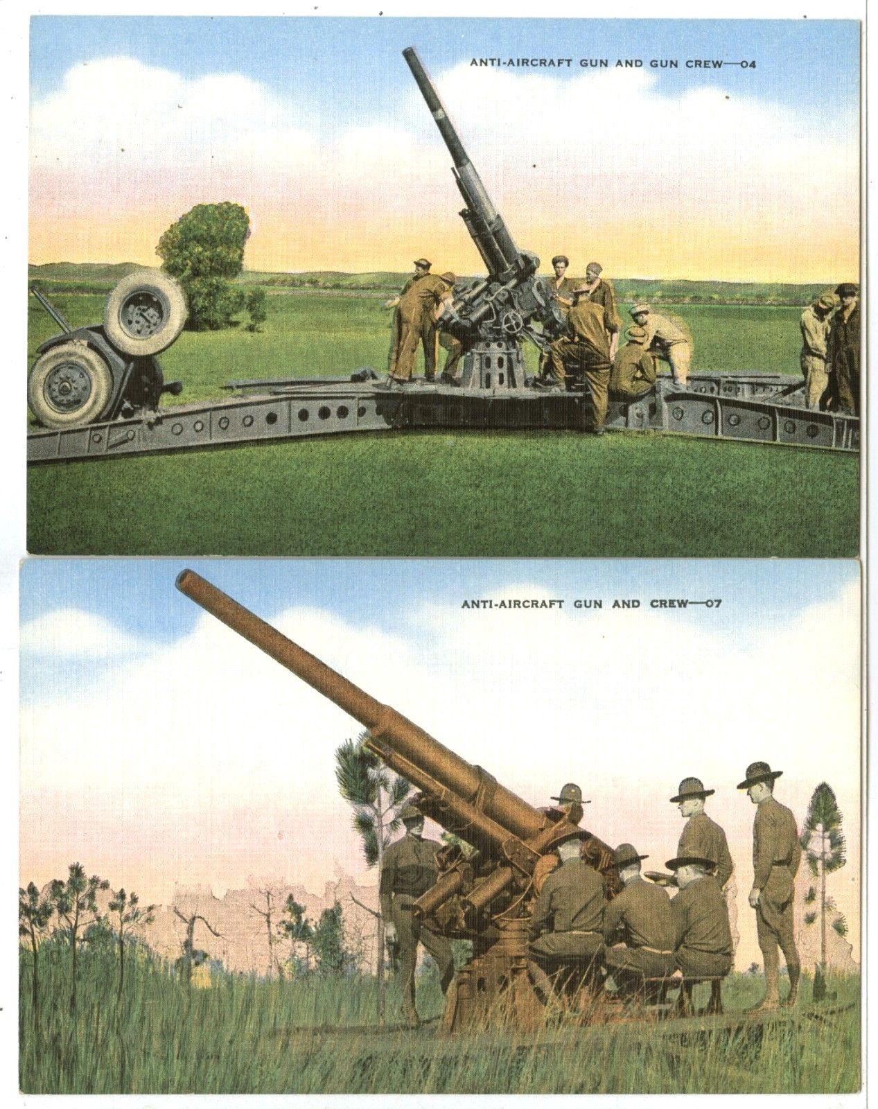 Title (ebay affiliate link): 2 of 4 WWII, 2 Different views of "Anti-Aircraft Gun and Gun Crew" Nos. 04 & 07