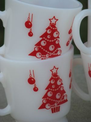 vtg White Milk Glass CHRISTMAS TREE Hazel Atlas CUPS