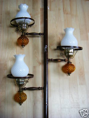 mid century FLOOR LAMP Amber Milk glass hobnail