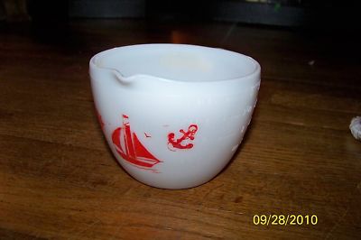 Vintage White Milk Glass Measuring Cup Sailboats Anchor