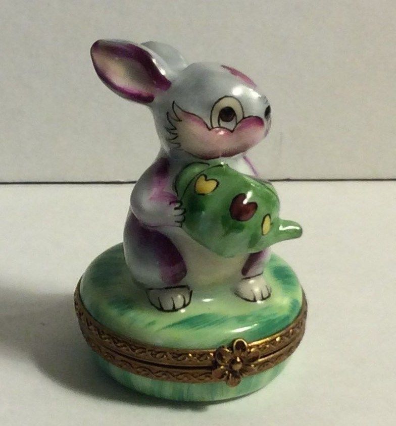 Title (ebay affiliate link): France Limoges Hand Painted P.P.A. Bunny Rabbit Green Watering Can Trinket Box