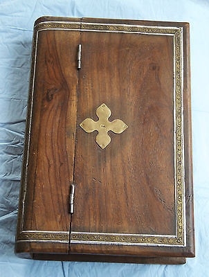 ANTIQUE WOODEN BIBLE BOOK SAFE HIDEAWAY Brass Trim