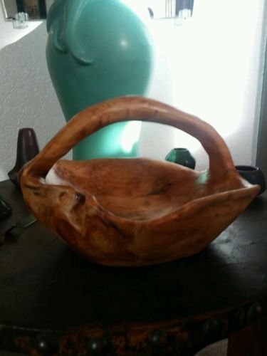 Title (ebay affiliate link): Beautiful Vintage BURL WOOD Hand Carved Bowl Basket w/ Archway Handle Unusual