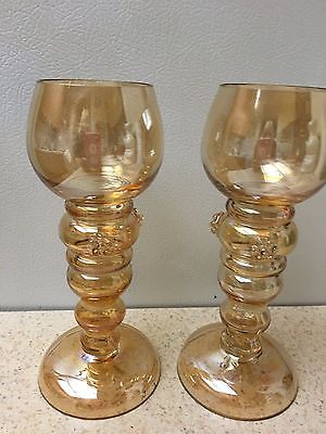 ANTIQUE TWO OOAK LUSTERWARE IRIDESCENT GOLD or AMBER HAND BLOWN WINE GLASS