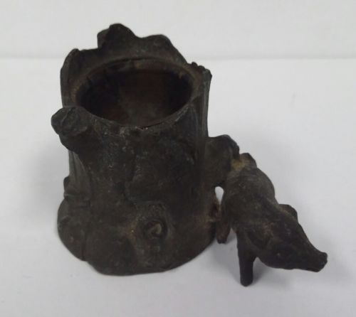 Antique Spelter Match Stick Holder Metal Spelter Figural Pig Tree Trunk