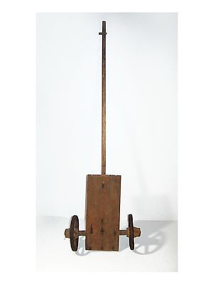 Primitive Rustic Wooden Folk Art Pull Toy Wagon, Sturdy Metal Wheels Wood Cogs