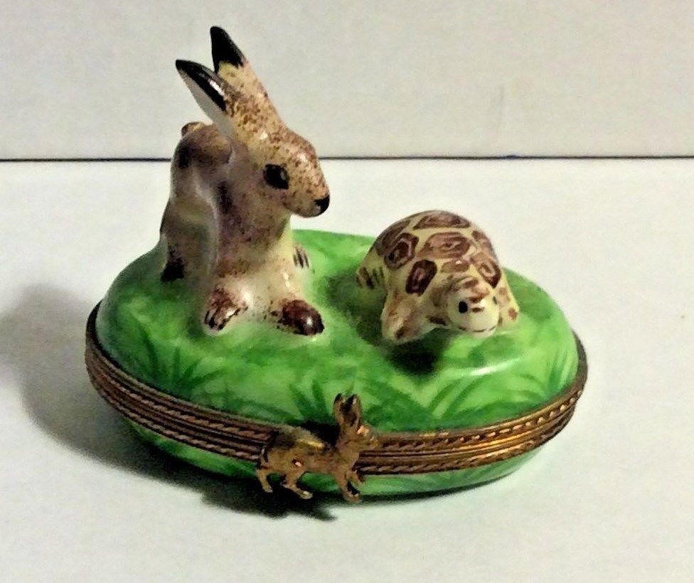 Title (ebay affiliate link): France Limoges Hand Painted Pierre Arquie Tortoise & Hare 3/750 Trinket Box