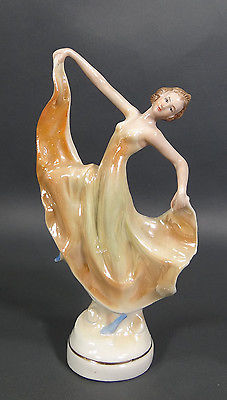 ART DECO GERMAN PORCELAIN WALTZ DANCING LADY DANCER FIGURINE SCULPTURE STATUE