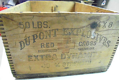Vintage Dupont Explosive Wooden Crate 50 lbs Red Cross Dynamite