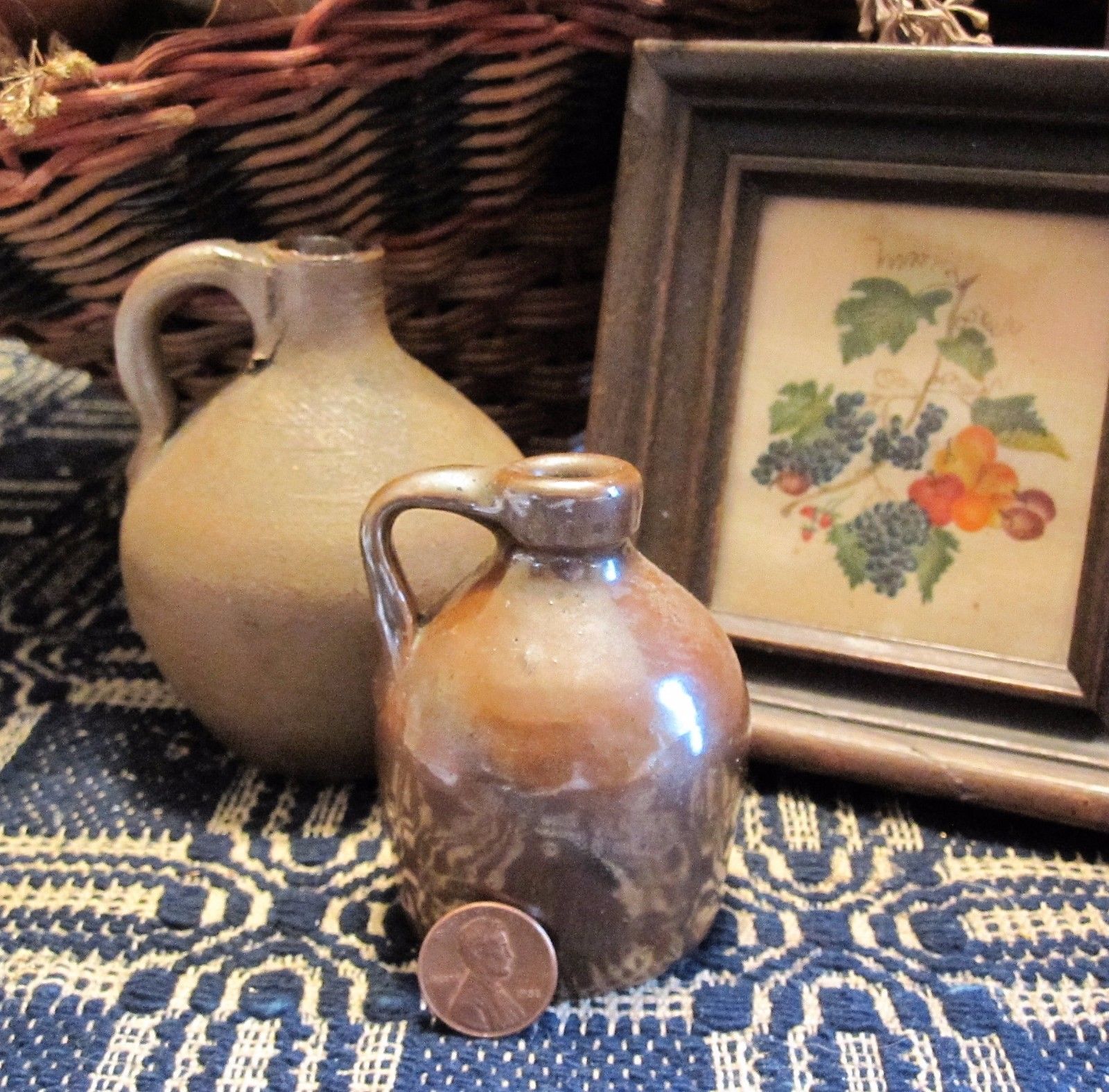 Antique Miniature Stoneware Pottery Jug 2 5/8" Tall