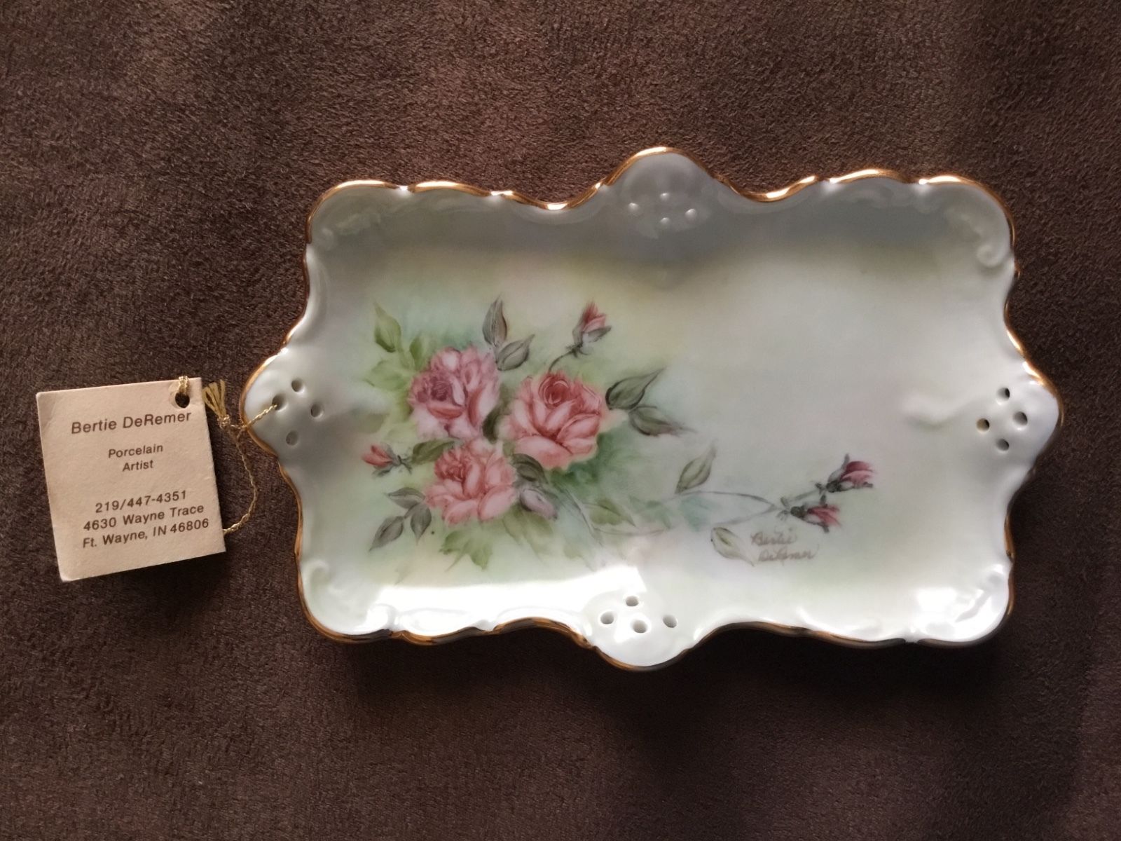 Title (ebay affiliate link): Vintage hand-painted small porcelain tray. Dresser tray/Tea tray gold trim