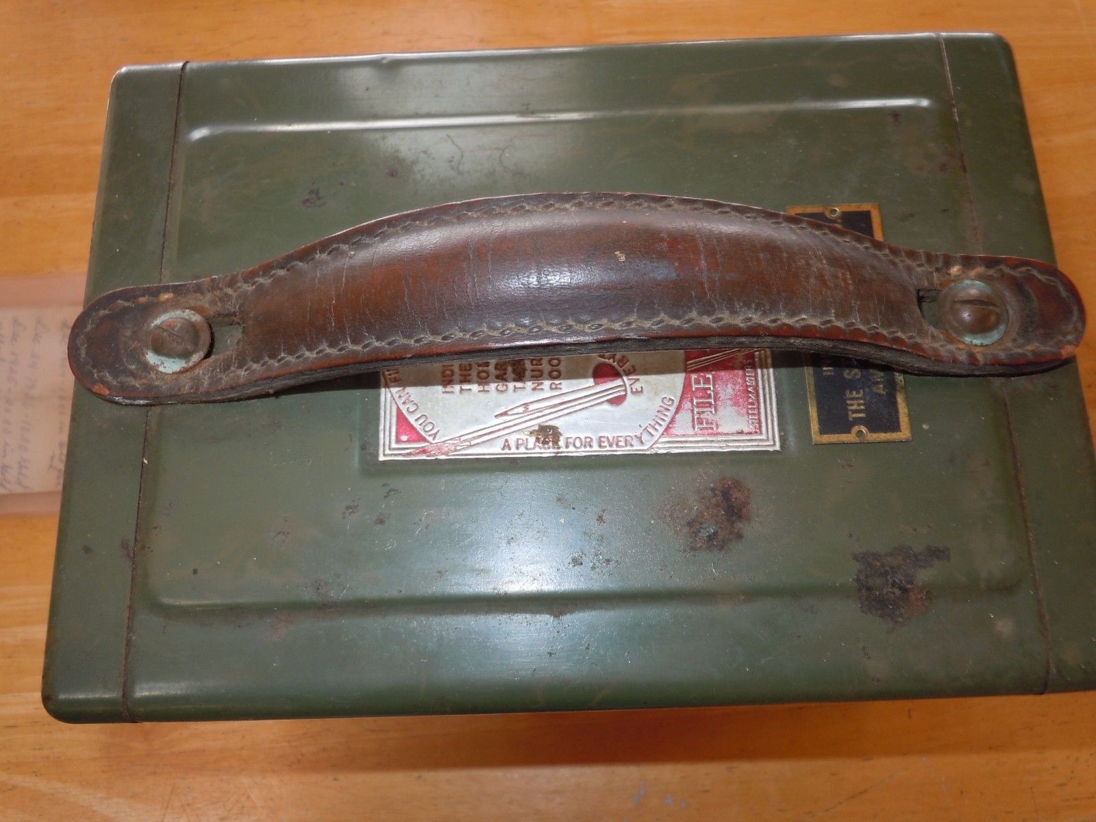 Title (ebay affiliate link): Vintage Metal Chest Drawers Leather Handle Antique File Box Made in USA