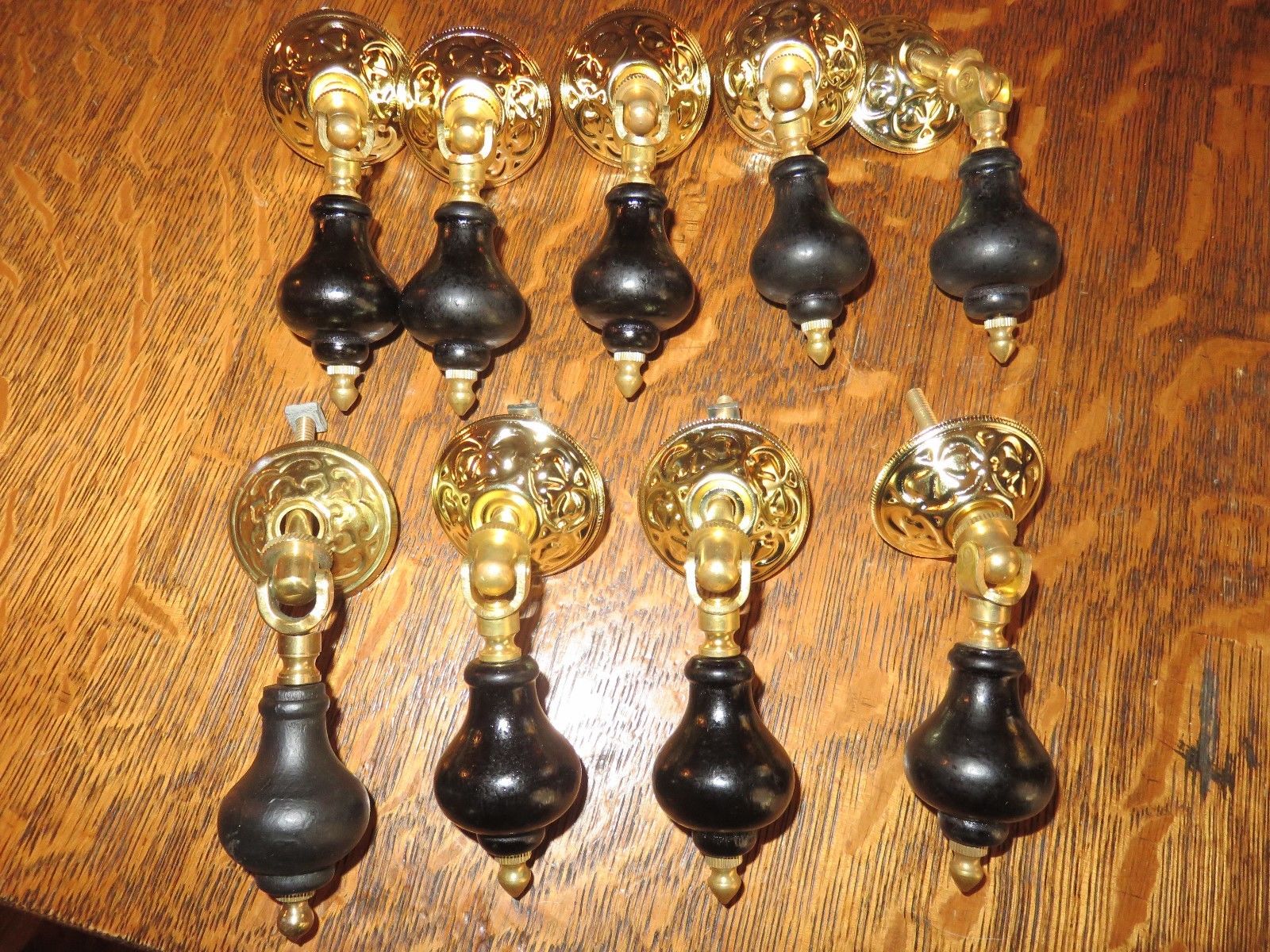 Title (ebay affiliate link): 9 VINTAGE WOOD BRASS TEAR DROP EASTLAKE VICTORIAN STYLE DRESSER DRAWER HANDLES
