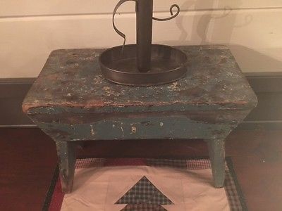Title (ebay affiliate link): Antique Primitive Foot Stool Bench ~ Old Green Paint ~ Boot Jack Ends ~ Country