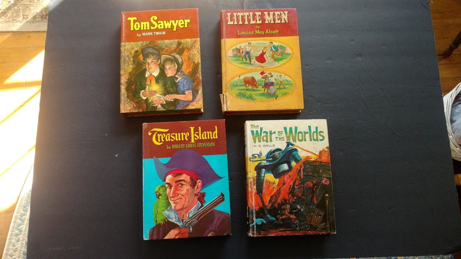 Title (ebay affiliate link): Lot of 4 vintage WHITMAN books CLASSICS Treasure Island Little Men More!