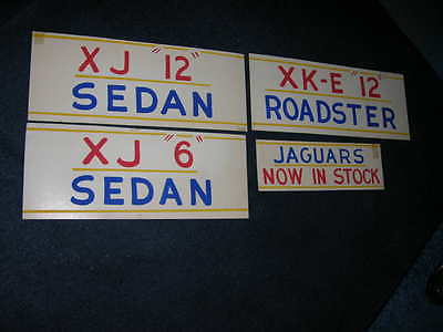 4 Vintage 1970''s Jaguar Hand Painted Auto Dealership Advertising Signs for Cars