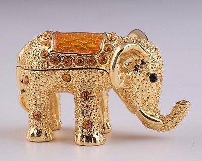Title (ebay affiliate link): Gold Elephant Faberge Trinket Box by Keren Kopal with Austrian Crystal
